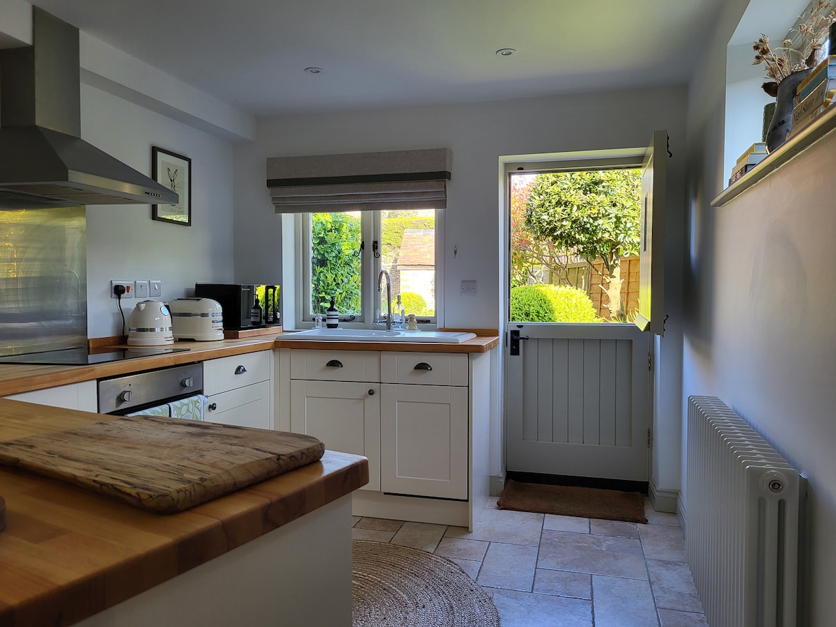 Wisteria Cottage is a high spec, Luxury cottage with under floor heating,log burner,Large kitchen/dinning area with views across fields and a downstairs Wc/Utility space. Upstairs are two centrally heated bedrooms and underfloor and towel rail heated bathroom with exposed beams. The master has a generous King size bed and the second bed, a single day Bed with a pull out trundle under. The bathroom has a roll top bath with shower and unlimited hot water. We offer Cotswold charm with modern luxury