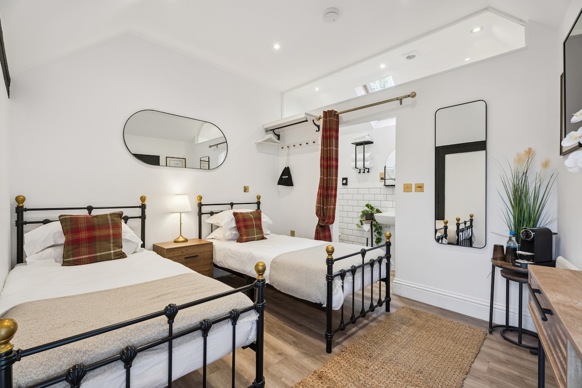 Allium is a lovely attic double room with En-suite with shower. Our beds have 400 count Egyptian, silky soft cotton sheets, cosy duvets, and fluffy pillows. The bathrooms all have robes, slippers, a hair dryer, and Green and Spring toiletries. All our rooms have a Smart TV, WIFI, telephone, Lavazza coffee machine, complimentary water, homemade biscuits, and a selection of teas from T2.