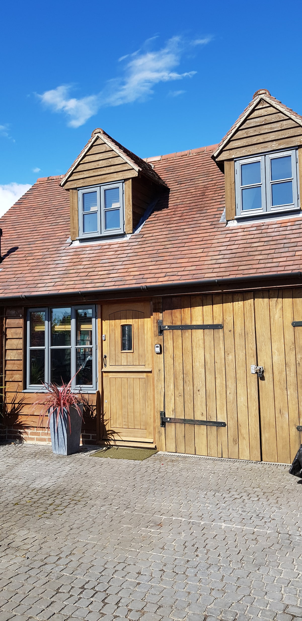 A country hideout above our detached oak framed barn. Stylishly furnished in a rustic luxury theme ensuring this retreat ticks all boxes to make your stay comfortable & cosy! Very spacious and an ideal place to come and relax for a romantic countryside break. Fantastic pub in the neighbouring village that serves food most days (please check) and there is a very well equipped kitchen should you like to cook for yourselves. Easy access to Oxfordshire best countryside walks too.