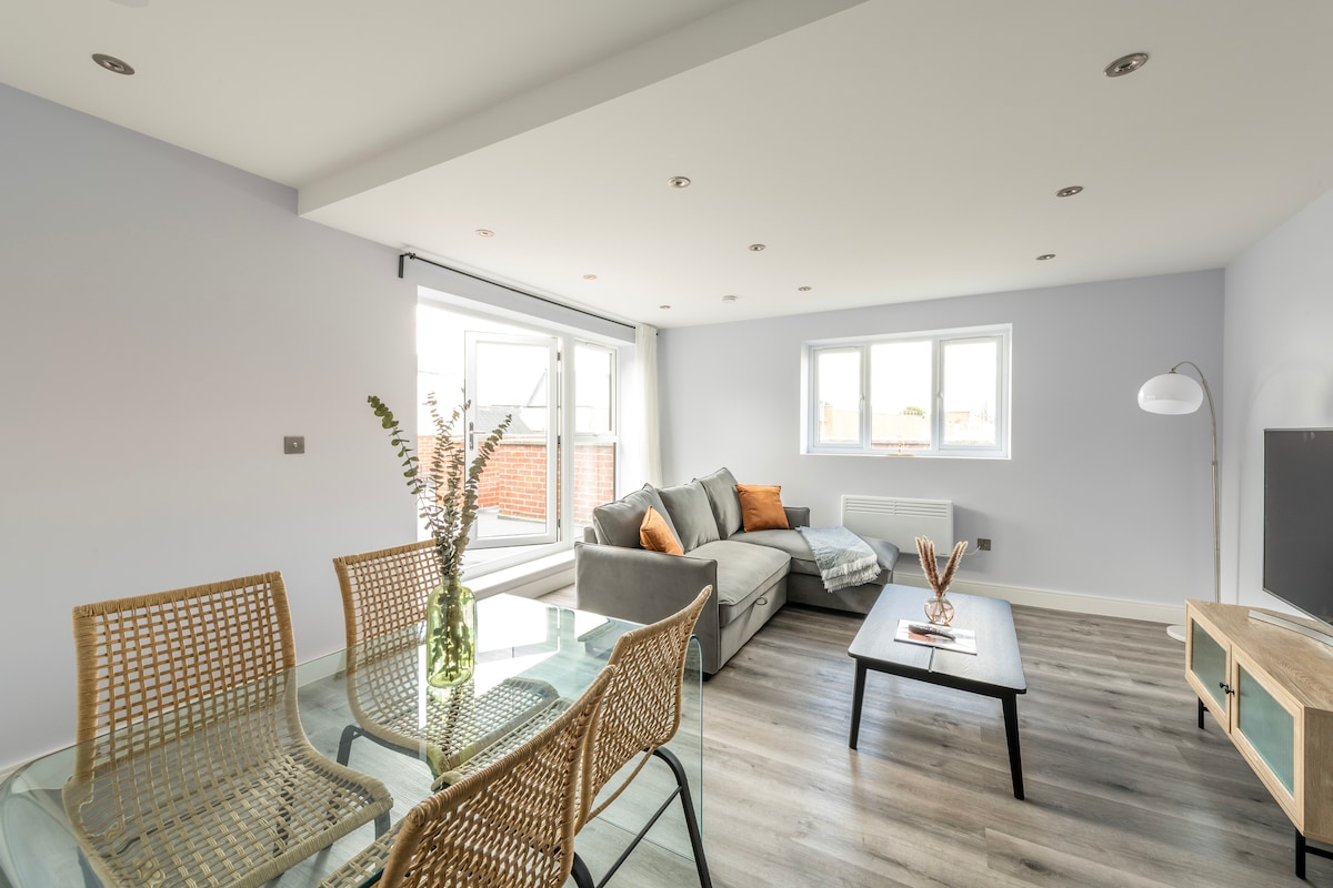 Welcome to our modern 2-bedroom serviced apartment near Oxford - a bright, comfortable base for work or exploring Oxfordshire. 🏠 Sleeps up to 6 with flexible beds and a sofa bed 🚗 Free on-site parking and easy access to Oxford city centre 🛋️ Open-plan living - dining - kitchen with Smart TV and WiFi 🧺 Ideal for longer stays with washer, dryer and full kitchen 🗝️ Easy self check-in via secure lockbox