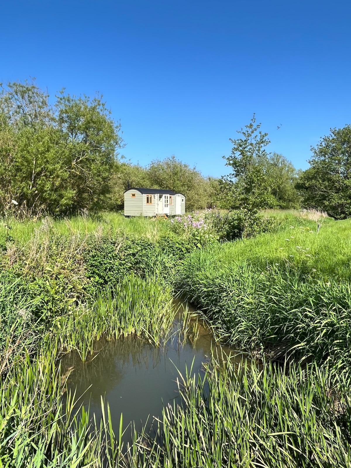 Our traditionally hand-built oak shepherd’s hut lies in a private and tranquil setting, one mile's drive from the historic Cotswold market town of Lechlade-on-Thames, and 12 miles from Cirencester, The Capital of the Cotswolds. It combines a traditionally hand-crafted interior with all the comforts you would expect from a modern glamping experience. Enjoy the lovely setting of this romantic spot in nature with nothing overlooking the hut, it truly feels like a little piece of paradise!