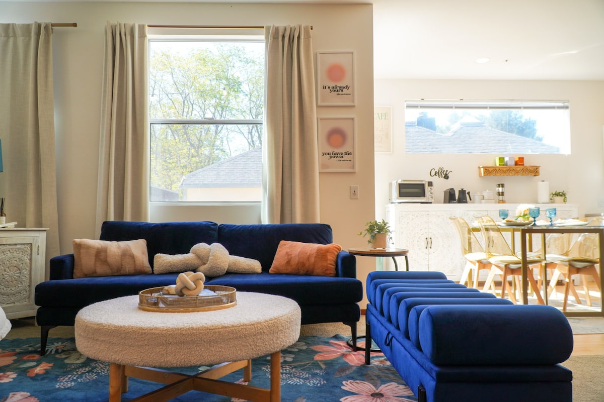 Kick back and relax in this calm, stylish space. Comfortable with all of the things you need around you. We have a washer and dryer as well as a refrigerator and kitchen. The couch in the living room also converts into a second bed. There are bluetooth speakers that can connect to the TV for an amazing movie night or to your phone for music. There is also an accessible Tesla charger outside for any electric cars. We are in charge of cleaning, all you have to do is have fun and enjoy your stay!