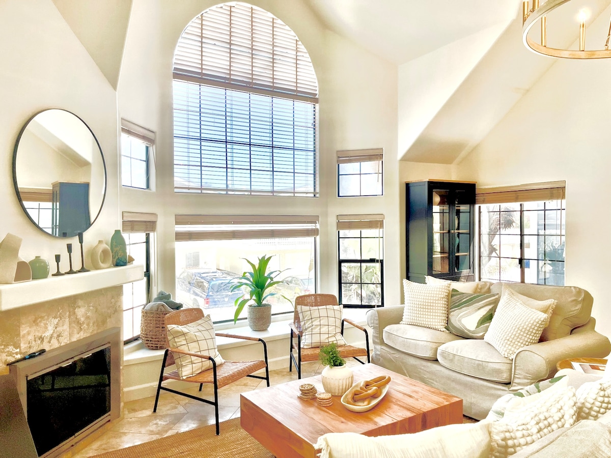 Relax in this cozy one-bedroom coastal retreat with ocean breezes, a Smart TV, a dedicated workspace, and a secluded private outdoor space. Polished beeswax-finished concrete earthing floors connect you to the ground for a calm, restorative stay. Cleaned following CDC guidelines with added UVC sanitizing and a Dyson air purifier. Set on a quiet street near the harbor, beaches, surfing, sunsets, whale watching, and local yoga. One parking space included.