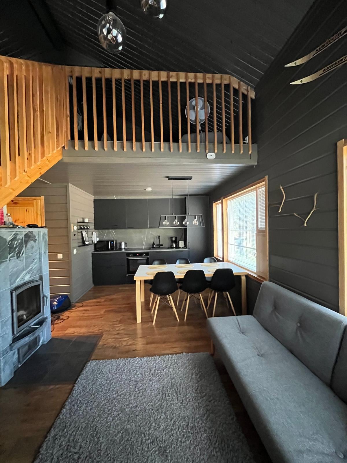 Enjoy a stylish and authentic experience at this centrally-located semi-detached log cabin. Cabin has been newly renovated and interior furnishing has been selected with care. One bedroom with double bed and a big loft with three beds. All beds are high quality and allergy friendly. 5 min walk to center of Levi, restaurants, spa, slopes, cross-country tracks, supermarket and Alko (Liquer store).