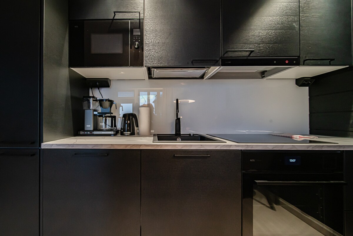 Welcome to a luxury apartment with a sauna and jacuzzi in Levi! A stunning 55m2, 2-bedroom apt in the heart of the front slopes, just 50m from the Glacier Express. Ground level. Luxe bedding, fully equipped kitchen, chic living room, high-quality design, fast Wi-Fi, Smart TV. Sauna, washer, drying cabinet. EV charging, free gym access, parking, ski storage. Includes private outdoor jacuzzi and two ski passes. Experience Levi in style! Book now!