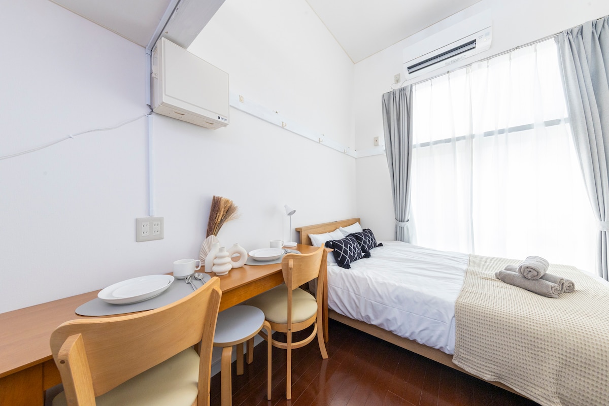 東武東上線大山駅北口から徒歩2分、池袋まで電車で5分の便利な立地です。 池袋からは東京都内どこへでも便利にアクセスできます。 チェックインは12時~、チェックアウトは~15時なので、ゆっくりと滞在が出来ます。 24㎡の1DKのアパートです。 ベッドルームにはキングサイズのベッドをご用意しました。 二人でも余裕をもって広々とお泊り頂けます。 ベッドルームの壁には50インチのスマートテレビを設置してあります。 Amazon primeやNetflix等をご視聴頂けます。 キッチンも完備しており、ご用意しているレトルトのご飯パック、お茶、お水、ラムネもお召し上がりください。 お買い物をしてキッチンで料理をしたり、ウーバーイーツを利用したり、色々なスタイルで滞在を楽しんでください。 必要な家具家電は一式そろっていますので長期滞在も可能です。 ☆設備・アメニティー☆ ***無料無線高速インターネット ***冷蔵庫/電子レンジ/コンロ/食器/調理器具 ***エアコン ***全自動洗濯乾燥機/ユニットバス×1