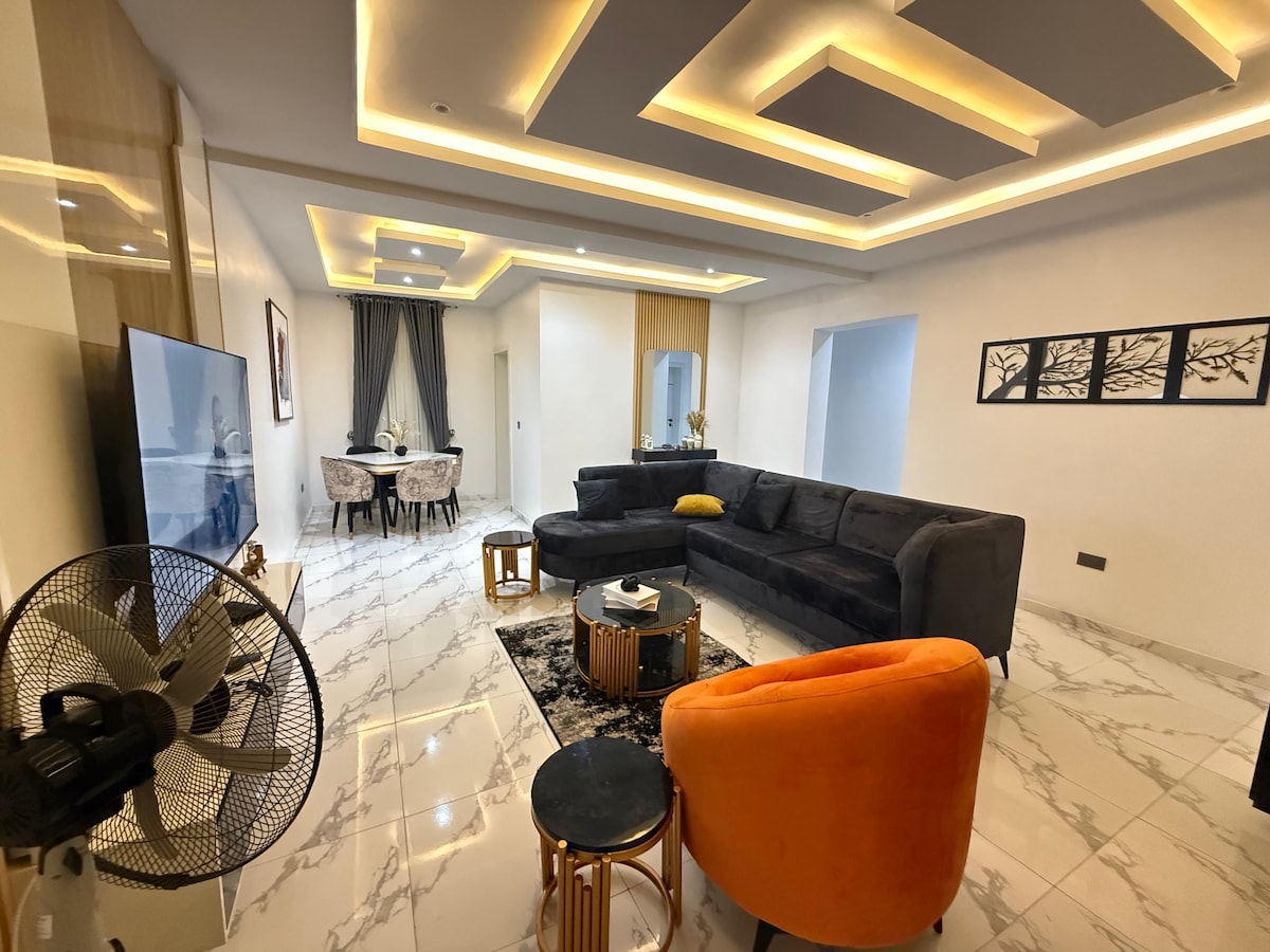 This beautiful apartment is located in a serene & secure environment & offers guests a home-away-from-home feeling.. Guests have access to fabulously-designed & decorated rooms/living room, a modern kitchen, Netflix/Prime streaming, unlimited internet, & 24/7 power supply (SEE HOUSE RULES ON ELECTRICITY ARRANGEMENT before booking). We deliver top-notch hospitality services to our guests, which makes us the perfect plug for your short & long term stays!