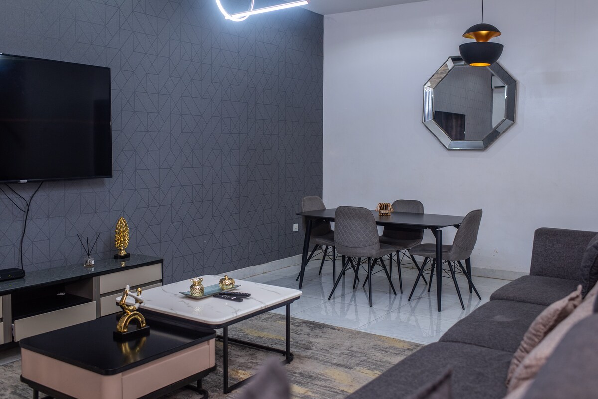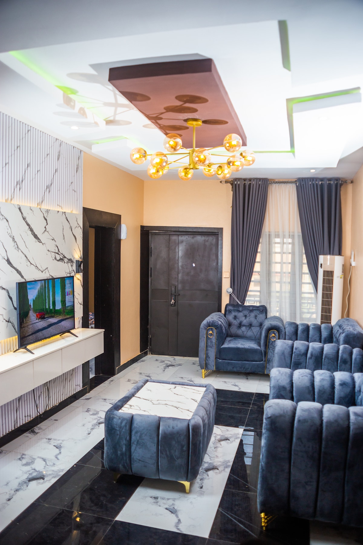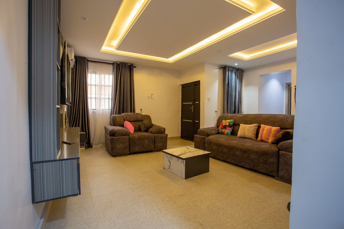 This beautiful apartment is located in a serene & secure environment & offers guests a home-away-from-home feeling.. Guests have access to fabulously-designed & decorated rooms/living room, a modern kitchen, Netflix/Prime streaming, unlimited internet, & 24/7 power supply (SEE HOUSE RULES ON ELECTRICITY ARRANGEMENT before booking). We deliver top-notch hospitality services to our guests, which makes us the perfect plug for your short & long term stays!