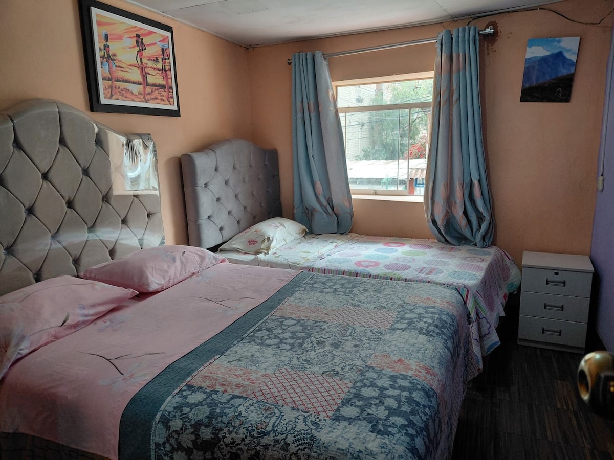 Disfruta de una estadía tranquila en nuestra acogedora habitación, ideal para parejas o familia pequeña. Cuenta con una cómoda cama matrimonial y una cama adicional, perfecta para descansar después de un día explorando la belleza natural de Churín. - Baño privado - Televisor y WiFi gratuito - Agua caliente las 24 horas Nuestra ubicación es inmejorable: - A pocos minutos de la Plaza de Armas - Cerca de las famosas aguas termales - Acceso fácil a caminatas ecológicas y rutas naturales