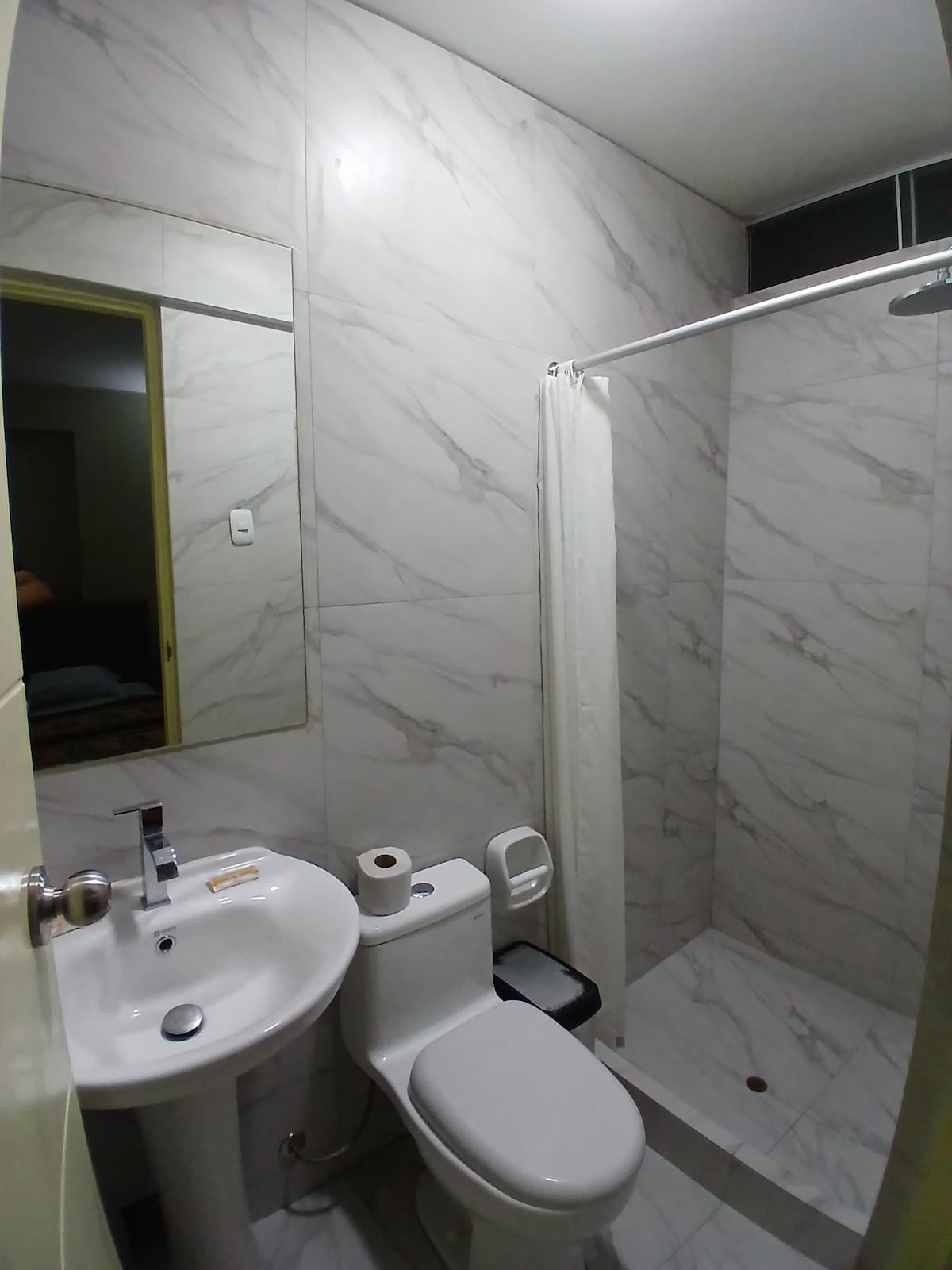 Habitación triple familiar . Cuenta con baño privado, tv cable, wifi, agua caliente. Estamos ubicados cerca de la plaza de armas y el Mercado municipal en mismo churin.