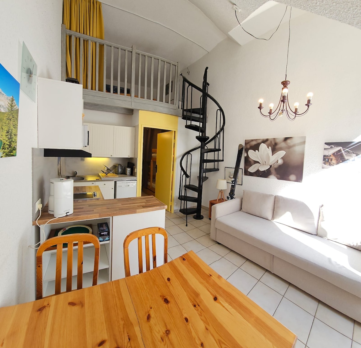 ❤ Appartement refait à neuf de 40m² quartier vieil Alpe☃️ Terrasse plein sud🌞😎 bien agencé tout confort Idéalement situé à proximité des commerces, office du tourisme vente des forfaits et départ du Télécabine🚡 centre. Possibilité de partir de l'immeuble skis chaussés télésiège de la grande sûre et retour à skis possible🎿 Navettes gratuites à proximité de la résidence. Stationnement gratuit réservé à la copropriété. Possibilité de ne plus prendre son véhicule pendant la durée du séjour.