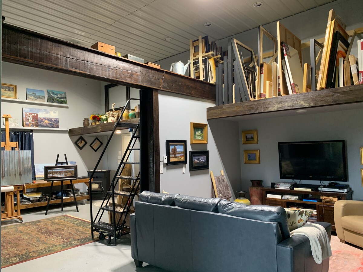 This classy and cozy space will set your imagination free. The unique mix of modern and rustic blend beautifully in this fully equipped Barndominium. The private backyard offers incredible views and the sunsets are not to be missed. Cook in the well stocked kitchen. Get cozy to watch a movie on the smart TV. The King bedroom is spacious and provides an amazing nights sleep with a guest favorite mattress! There is a twin bed and couches in the main living room for more than 2 guests.