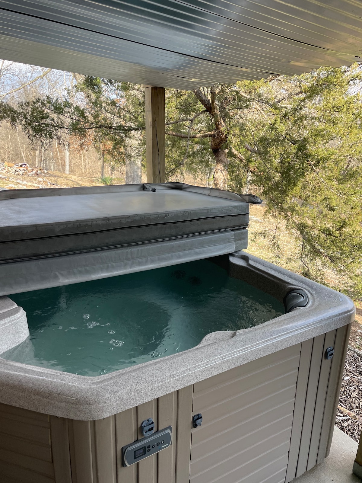 热水浴缸、靠近大雪松、拱形天花板、游戏