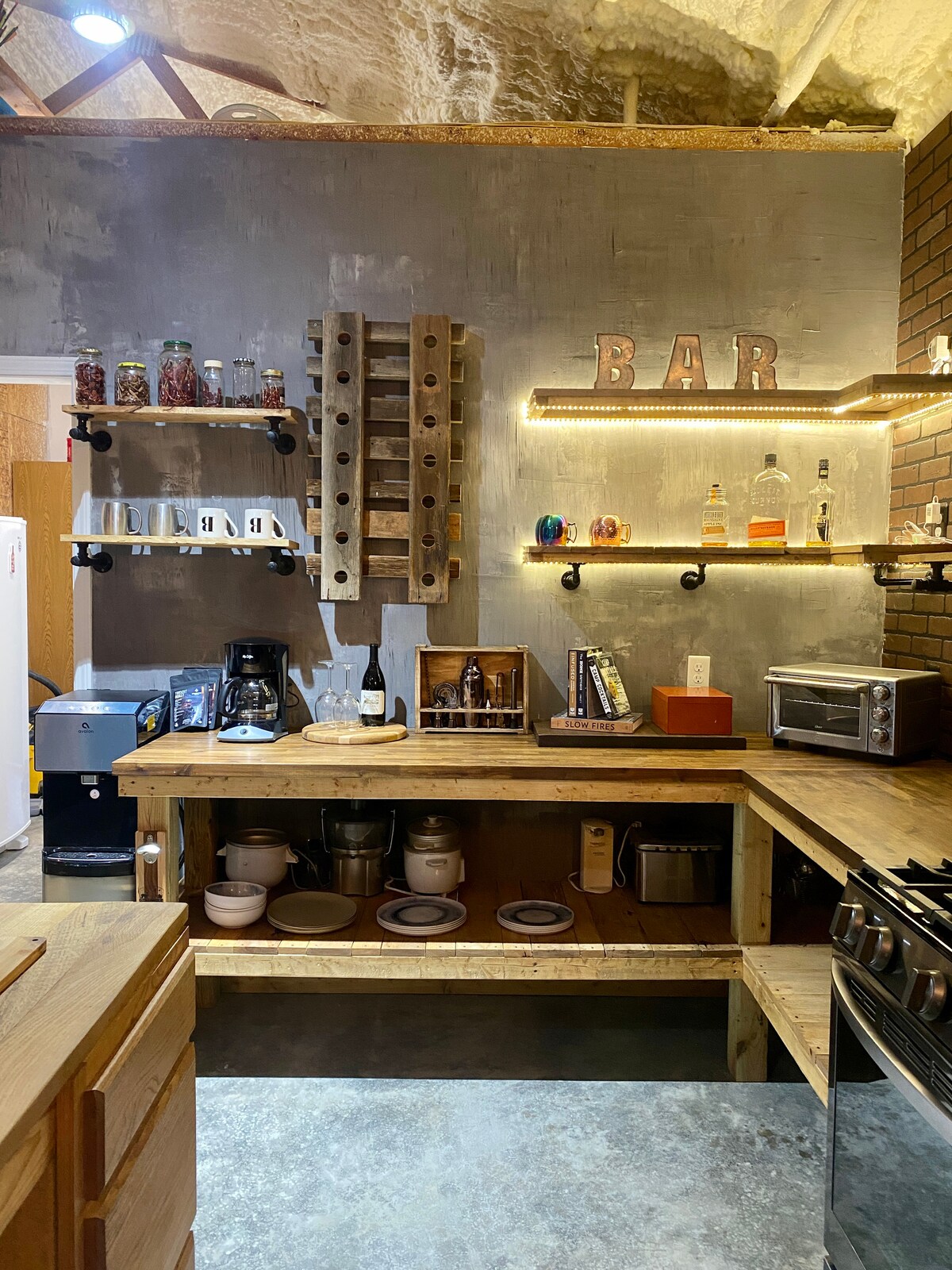 Rustic decor with high end touches. Open floor plan, kitchen is stocked with all essentials needed to cook your favorite meal Eating space at granite island, or in dining area. Quiet, Comfortable bedroom. Large utility with washer and dryer You will love the bathroom with the oversize shower. Enjoy grilling on the large deck. Flat screen TV in the living room and bedroom Gas fireplace in the living room