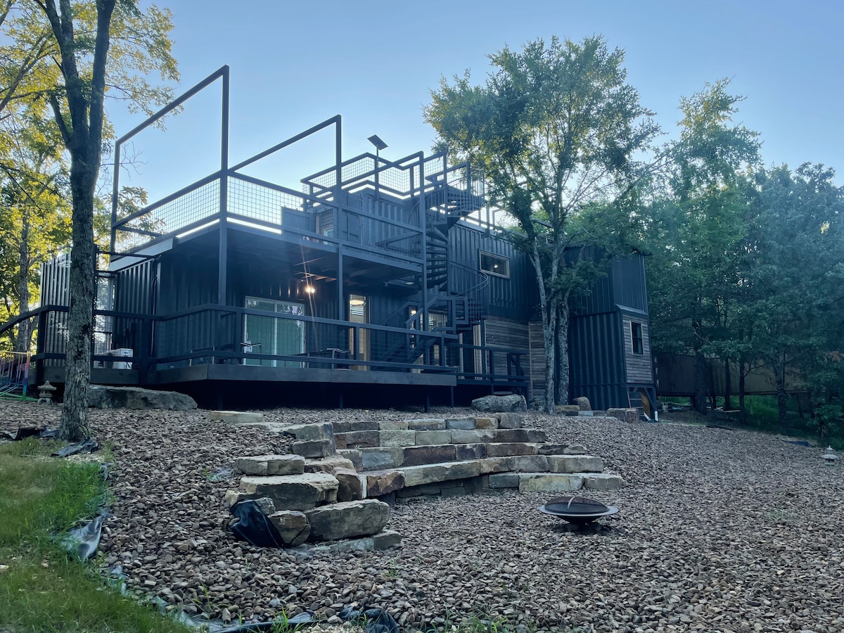 Dive into your next wild adventure at Heart Haven! Nature lovers &adventure enthusiasts will love this lakeside container cabin, right on Beaver Lake. Nestled in the trees, this custom designed shipping container cabin will quickly become your favorite nature escape. Unwind on the rooftop deck in the hot tub, play some pickleball on the communal courts, & experience the Ozarks. Come for a simple stay or go all inclusive w optional upgrades like boat rental, SUP yoga, Efoil lessons, massage, etc!