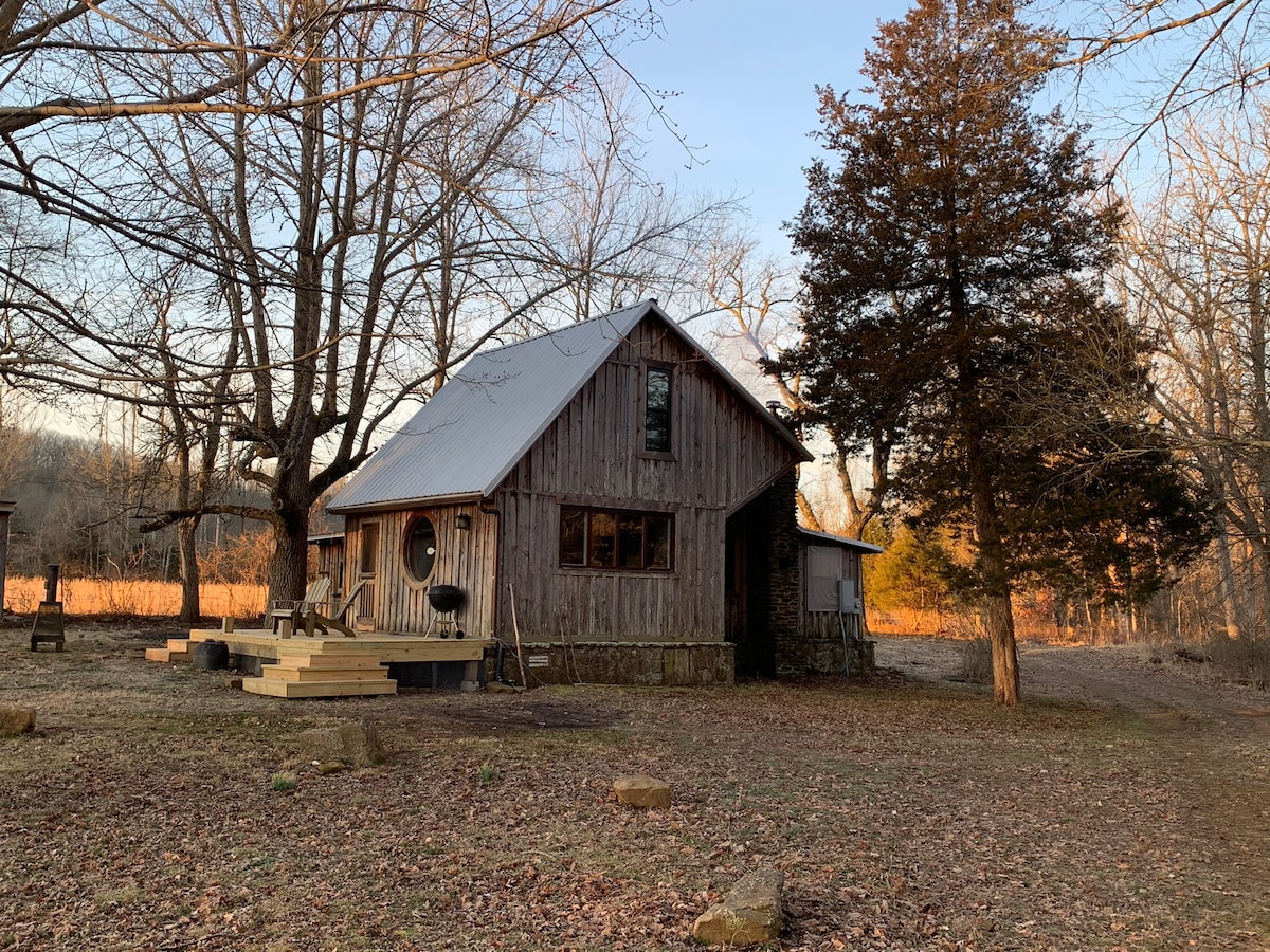 Enjoy this cozy cabin nestled in the heart of the Ozarks. With a view of Lost Valley and beyond, the front porch is a nice place to relax and unwind! With a full kitchen, fire pit, horseshoe pit, charcoal grill, and more we wish you to be able to vacation deliberately, comfortably, and affordably! Please hit us up with any questions and thank you! We do have Pyrenees dogs who watch over the farm, they are harmless and just part of the landscape. Firewood for sale, 5$ an arm load!