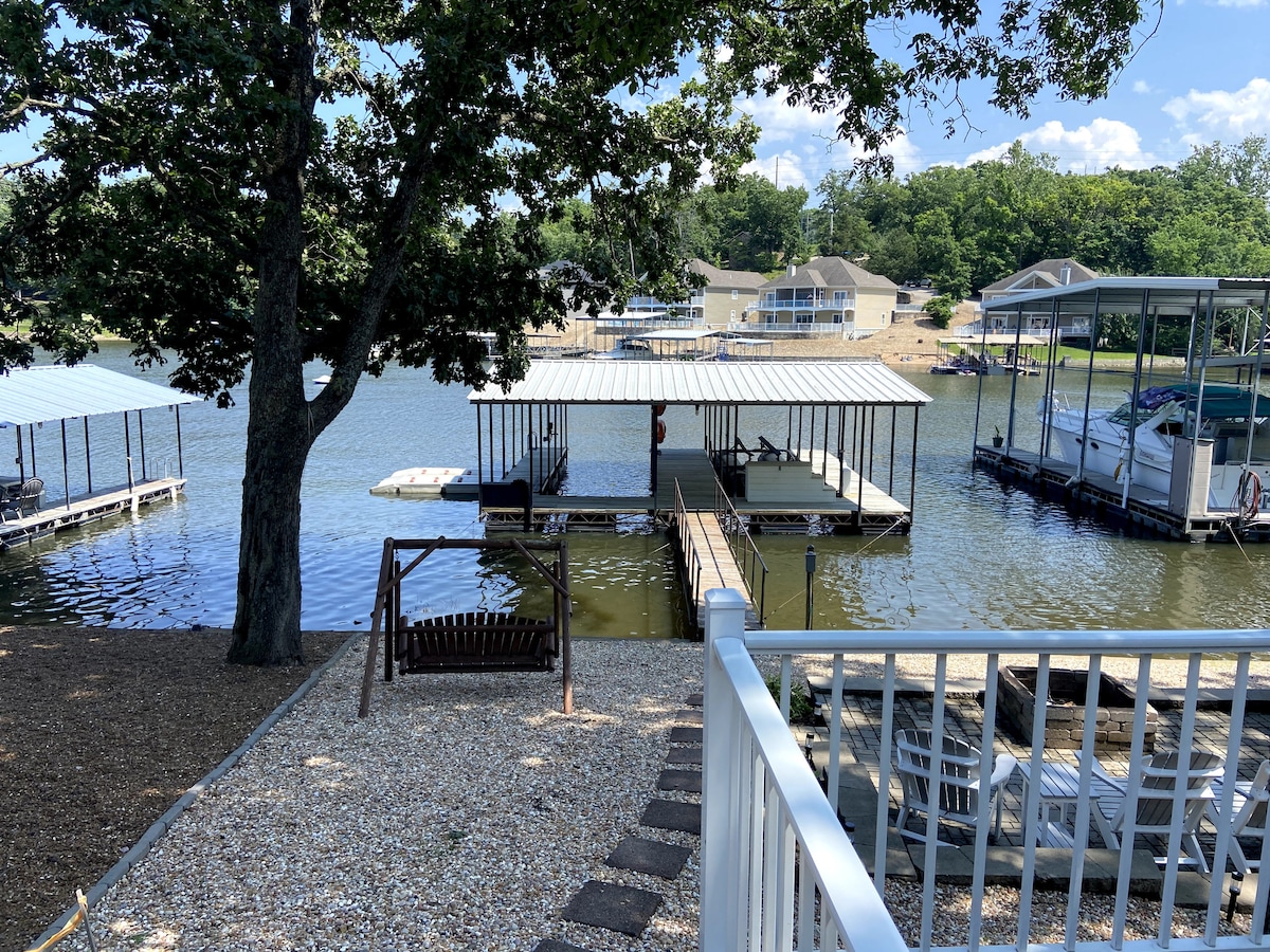 Welcome to Dock Holiday! Get your family or friends together for the perfect Lake of the Ozarks getaway. Our house comfortably accommodates 12 & is only steps away from the water! It's located in a wide-no wake cove, right off the main channel. Close to Papa Chubby's, Larry's on the Lake, Fish and Co. & much more! Outside the home you'll find a large fire pit to enjoy making the perfect s’more, kayaks & private dock with a 10’x24’ boat slip.
