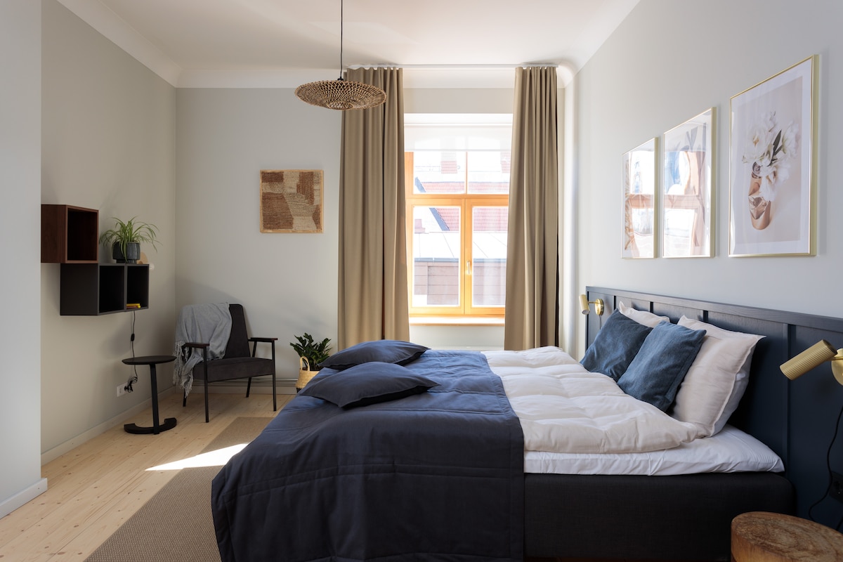The charming Old Town Apartment is situated on the ground level of a historical structure in the bustling center of the city, enveloped by a plethora of lively bars, eateries, and al fresco dining spots. Despite its vibrant surroundings, the apartment offers a serene and tranquil atmosphere as it overlooks a charming courtyard at the rear of the building. Additionally, guests have access to two bicycles for leisurely exploration of the town, discovering its rich historical landmarks, or embarking on scenic rides along the numerous cycling and walking paths within the picturesque Gauja National Park.