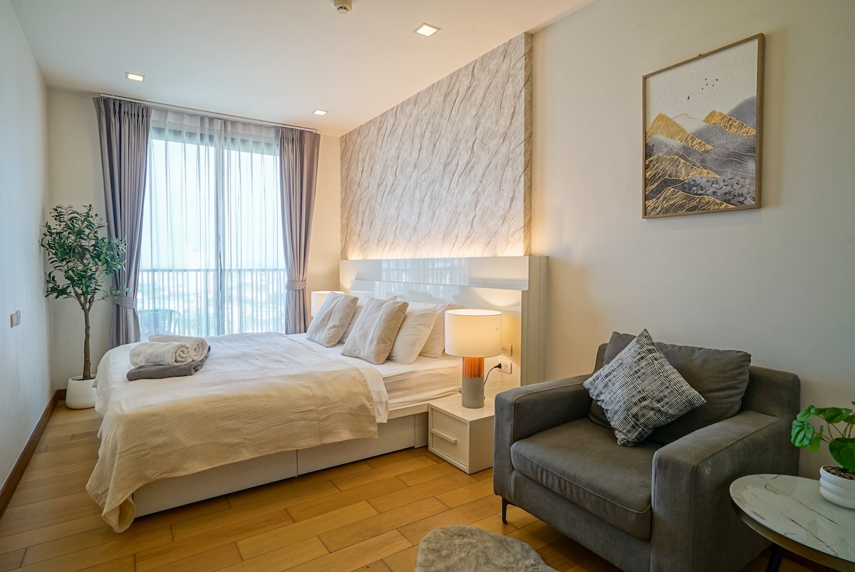 Luxury brand-new 1 bedroom apartment in downtown, convenient location. Approximately 5 minutes walk to the Night Bazaar, 20 minutes walk to old city, and 15 minutes to airport by taxi. Full facilities with 24 hrs security and free WiFi in the room. Easy access to local transportation with less traffic.