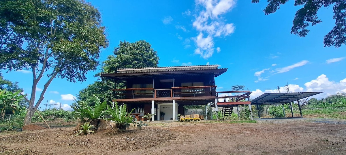 Discover Your Tranquil Retreat in Chiang Mai Nestled amidst lush teak trees, our guesthouse villa offers a serene escape from the city's hustle & bustle. Wake up to nature's sounds and panoramic pond views. Enjoy the sparkling garden pool, perfect for a refreshing dip or sun lounging. All rooms are air-conditioned for your comfort. Come and experience the perfect blend of peaceful countryside living with easy access to the cultural treasures of Chiang Mai just 20-30 minutes away.