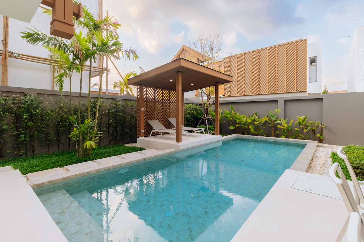 Villa Belplaya Phuket, Bangtao is a brand-new 3BR private pool villa by Bangtao Beach, newly built and fully furnished in Jan 2026. Just a 2-minute walk to the beach, Maya Beach Club, Catch Beach Club, and 10+ beachfront cafés. Enjoy a private pool with jacuzzi, BBQ, bathtub in coastal design. Only 5 minutes to central Boat Avenue’s cafes, restaurants, and groceries. Ideal for families, friends, digital nomads, short or long stays—new, clean, comfortable, and perfectly connected to everything.