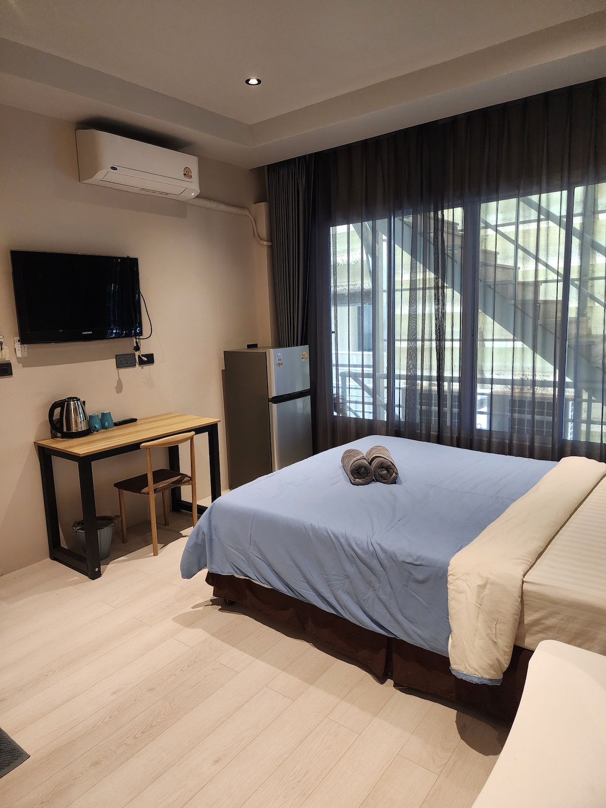 Enjoy your stay in our Superior Stylish Room with Private Balcony, designed for comfort and relaxation. The room features modern décor, a cozy bed, air-conditioning, smart TV, fridge, and a clean private bathroom. Located just a short walk from Patong Beach, Jungceylon Mall, and Bangla Road, you’ll have easy access to the best dining, shopping, and nightlife spots — yet our hotel stays quiet and peaceful, perfect for a restful night’s sleep.