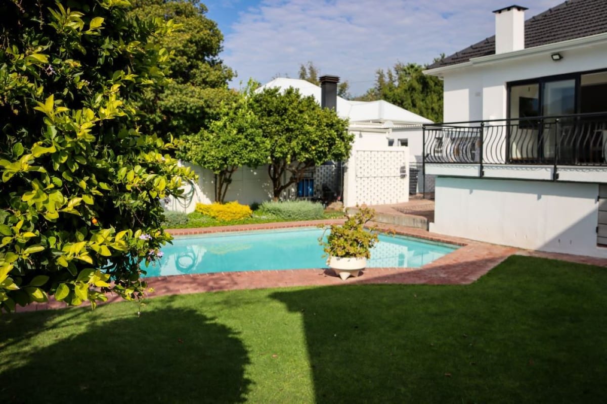 Cozy Family Flat at Stellenbosch Mountain Base – trails on doorstep - just 1.3 km from CBD. Sitated on the mountain with direct access to safe walking trails and the wide open scenic “Butterfly Fields” right on our doorstep. The space is compact, with 2 small en suite bedrooms, a kitchenette, and a small lounge. Perfect for young families: toys, books, trampoline, treehouse, and shared garden and pool. Please note: the rooms are small and we have 2 very friendly dogs on the property.