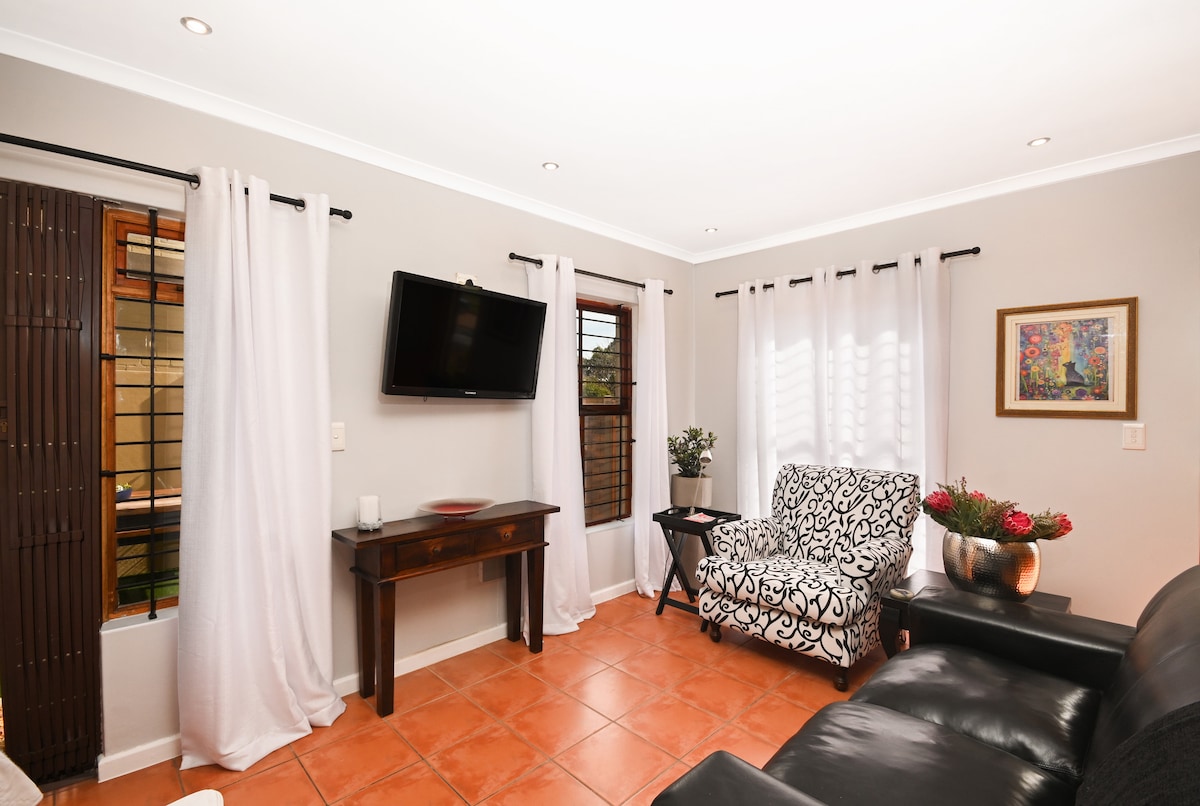 SOLAR Powered Enjoy breathtaking mountain views from one of the two balconies or curl up next to the indoor fireplace in this spacious open-plan apartment. French doors lead to both balconies that overlook the garden and olive orchard where you can enjoy a barbecue in your own private space. This tastefully furnished with stylish en-suite bathrooms is yours to make home away from home, whilst you enjoy the picturesque winelands and elegant restaurants. Seven minutes walk to the centre of town.