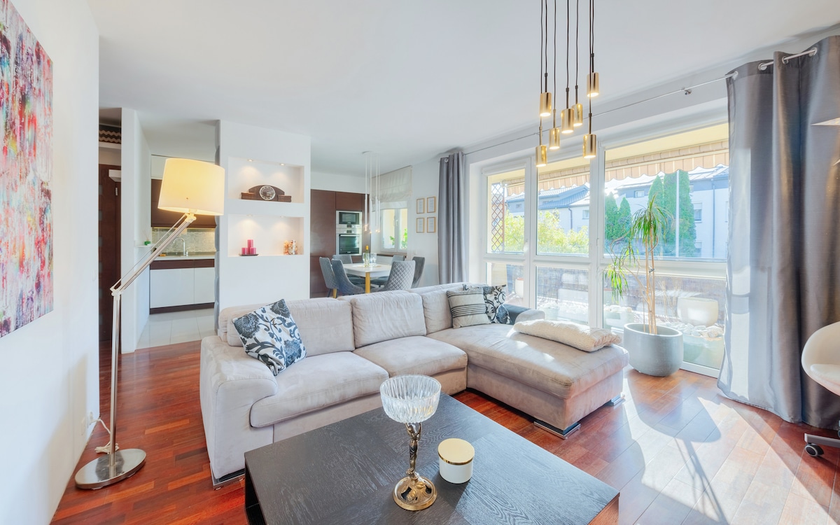 Spacious, modern apartment with a huge living room, a big balcony and a view over the city, in the heart of Lodz, but in a calm and quiet neighbourhood, located in luxurious estate. Close to the vibrant main street of the city - Piotrkowska with many restaurants and clubs. Beautiful park, tennis courts, concert and event halls, Expo Lodz, a cinema and a shopping mall in the neighbourhood, walking distance from the apartment. Have a great time in Lodz!