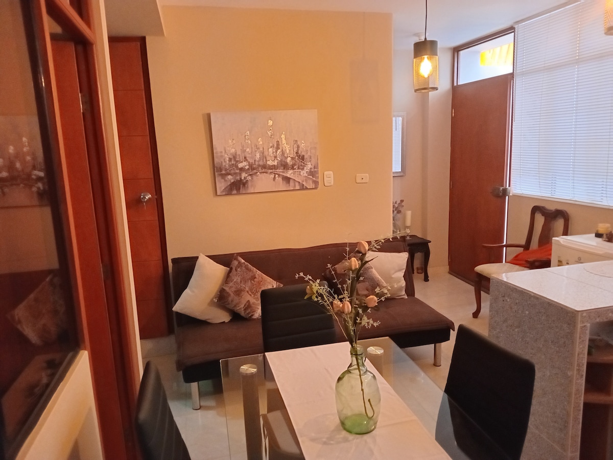 Hermoso apartamento en Pacasmayo, a solo 2 cuadras y media de la playa. Ideal para hasta 6 personas. Cuenta con 3 camas de 2 plazas, sofá cama, cocina equipada, TV LED, equipo de sonido, agua caliente y fría, baño privado y entrada independiente. Zona cerca del mar. ¡Perfecto para descansar y disfrutar del sol y la playa a un súper precio!