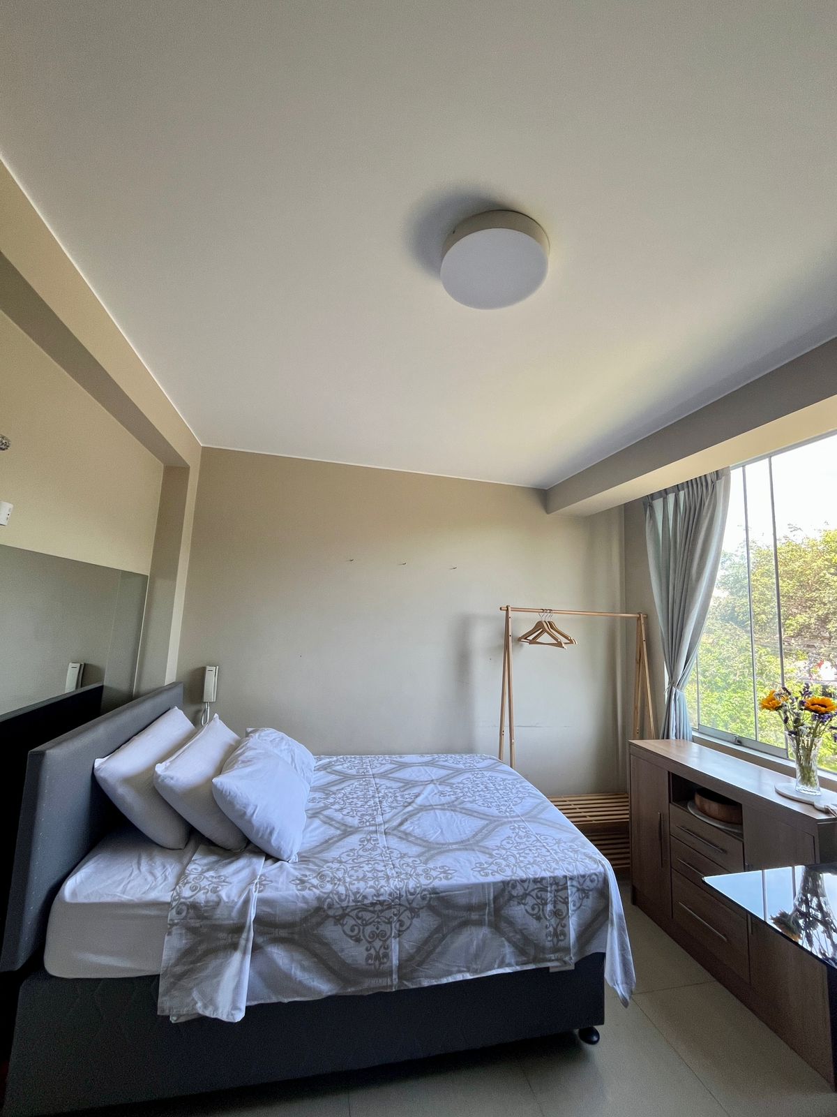 Disfruta de una habitación moderna con todo lo necesario para una estadía cómoda y tranquila. Su ubicación estratégica te sitúa a pasos de Plaza Norte, donde encontrarás centros comerciales, terminal de buses, Metropolitano y el servicio AeroDirecto, que conecta directamente con el aeropuerto en pocos minutos. Ideal para parejas o viajeros que buscan practicidad, confort y una excelente conexión en Lima. ¡Te esperamos!