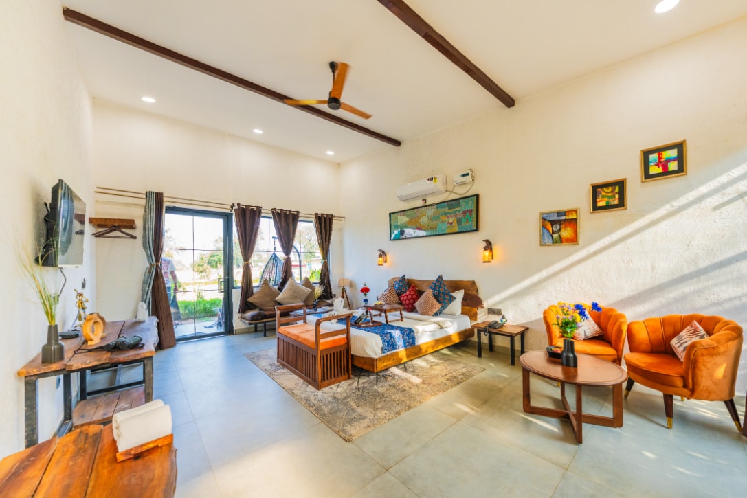 A posh sanctuary where eco-friendly architecture and refined elegance coexist, Pandav Greens is located in the centre of Pachmarhi. Surrounded by a lively, environmentally conscious neighbourhood that is in tune with the beauty of nature, the property boldly raises awareness of sustainable living. Discover our perfectly manicured grass with cosy sitting options as soon as you step outdoors.