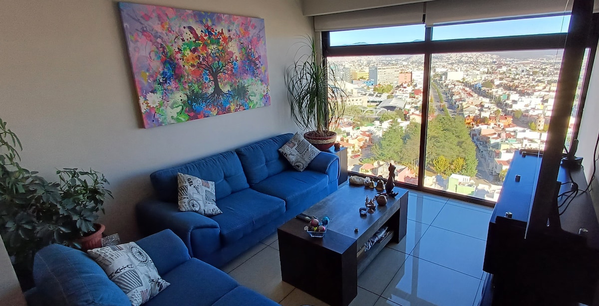 Departamento con 1 habitación privada, con área de cocina, comedor, sala de televisión y dos baños completos. Ubicado en el suroeste de la ciudad. Está a muy pocos minutos de Zona Plateada donde encontraran muchos restaurantes. Incluye: internet de alta velocidad, Televisión (con apps de películas) Amenidades en el último piso que incluyen: Alberca, gimnasio, sala de juegos, salón de usos múltiples, área de masajes, cancha de pádel, jardines con hermoso lago en medio, estacionamiento privado.