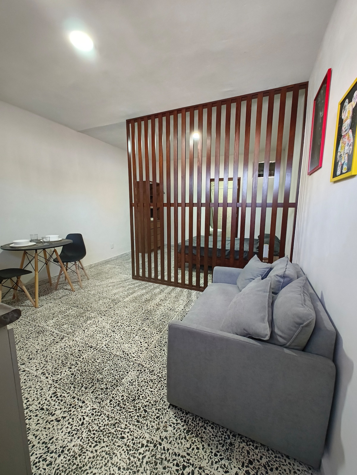 Moderno LOFT con detalles encantadores! Con caseta de seguridad y acceso automatizado a las instalaciones. Encontrarás solo para tu uso, es decir, no tienes que compartirlos con alguien: cocina equipada con utensilios básicos, sala, una cama King, closet, un baño completo, un área con lavadero y tendedero, caja fuerte, plancha. Espacios compartidos, sin costo: Gimnasio con área de cardio y pesas, Business Center, Estacionamiento privado dentro de las instalaciones. Con costo: Lavandería.