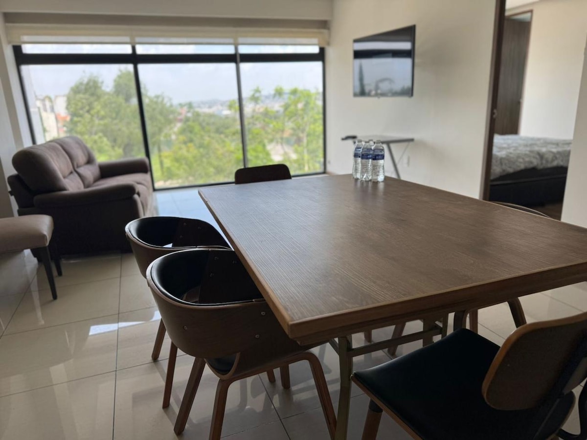 Departamento con terraza con vista panorámica de todo Pachuca. Cuenta con una cama matrimonial,TV/NETFLIX,baño completo, jacuzzi, estufa, barra amplia, clóset, wifi, estacionamiento privado, circuito de cámaras de vigilancia. Con acceso a una explanada y mirador. Ubicado a 5 minutos en coche del Reloj Monumental de Pachuca (centro) y a 15 minutos del pueblo mágico Real Del Monte, cerca de pueblos mágicos en coche, acceso a transporte publico a 3 minutos caminando hacia pueblos mágicos de Hidalgo