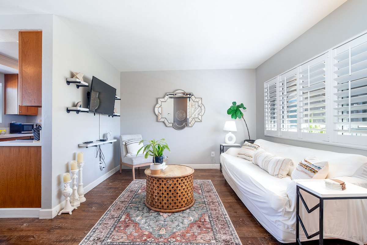 This is the perfect Boho Bay Getaway! 2 blocks from the bay, 7 blocks from the beach, less than a mile from shops and dining, close to downtown San Diego - here you'll enjoy location and luxury all in one place. Take advantage of the sunny weather with beach towels provided, complimentary coffee to take to the bay in the morning then come back to some breakfast snacks or walk to a local breakfast spot! In a complex with multiple other units - quiet hours are 10pm - 7am.