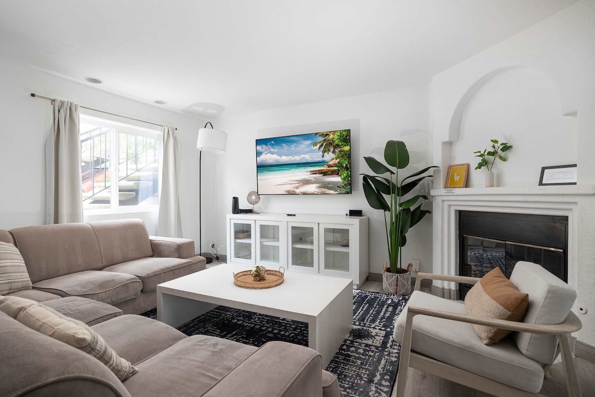 Relax and recharge in this spacious 2nd floor villa with stunning ocean views and a full-body massage chair in the master suite with a private patio. Just steps from Marine Beach. Enjoy high ceilings, a cozy fireplace, a fully equipped kitchen and lots of natural light. You'll also have Wi-Fi, cable TV, a laundry room/home office, parking for one vehicle, and beach chairs, towels, and more. Weekend getaway or a longer escape, this villa is your perfect La Jolla sanctuary.