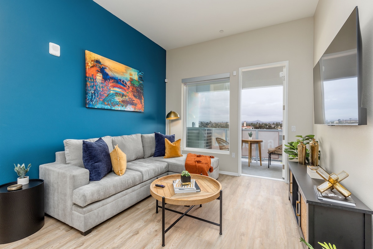Celebrate the spirit of the ocean from this elevated stylish abode. Decorated with sea-foam blue walls, mid-century modern furnishings and a Moroccan rug. Take advantage of the well-appointed desk and open floor plan of this roost. (please note bikes have a rental fee of $40 per bike) This abode is in a central beach location next to Kate Sessions Park. Take a quick walk or bike ride to Pacific Beach and Garnet Avenue, a vibrant area with an abundance of shops, small cafes, and bars.