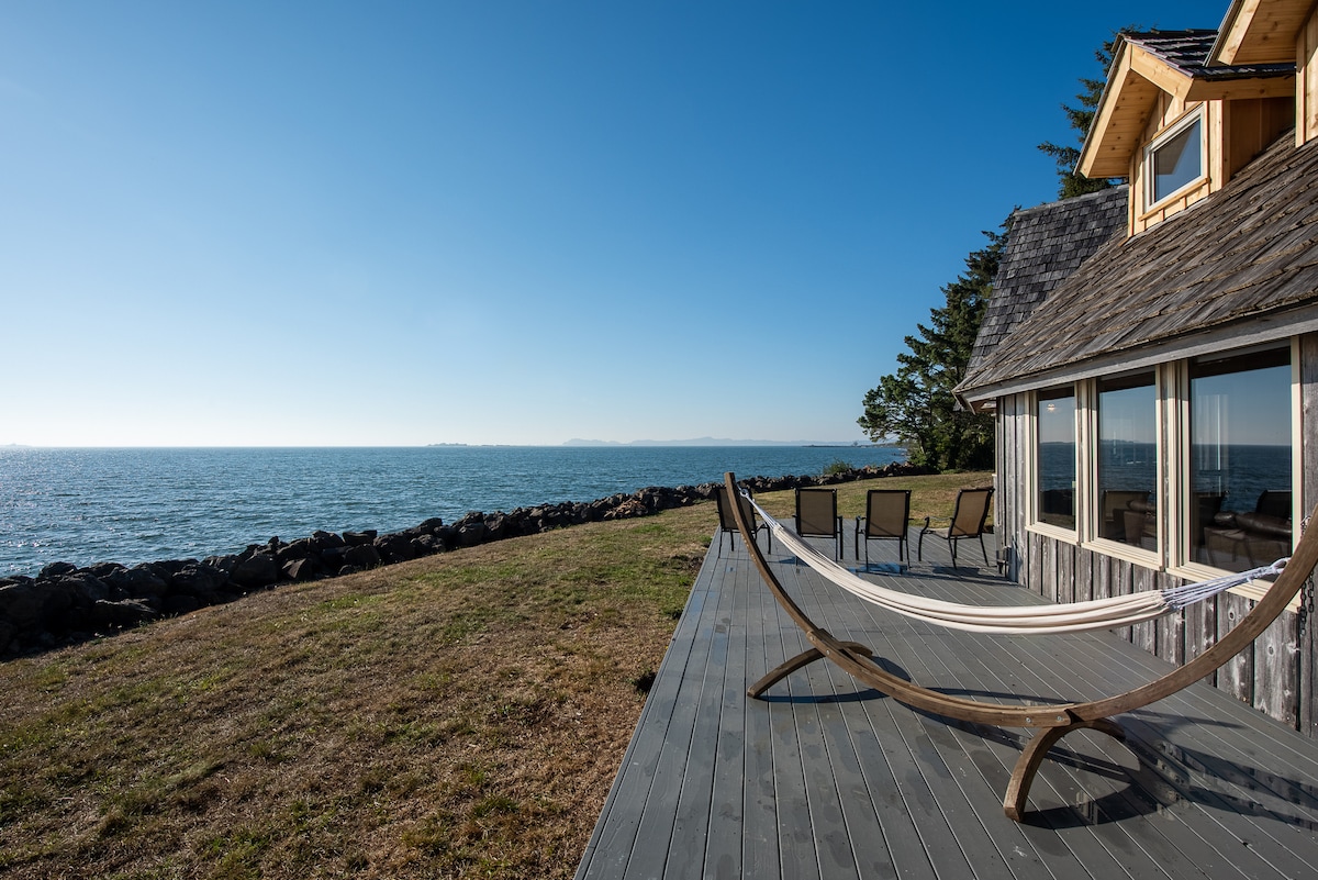 Chinook Shores is a charming, cozy nautical beachfront cottage with EASY beach access. It offers a spectacular front row view of the Historic Lower Columbia River as your back drop. The panoramic wall of windows & back deck offer an unobstructed view of passing ships, wildlife, & GORGEOUS SUNSETS. The semi-private beach offers views of the historic seining fish traps, driftwood,sea glass & serene sounds of waves. Astoria /Seaside OR & Long Beach WA are both within a 12 min. drive. A HIDDEN GEM.