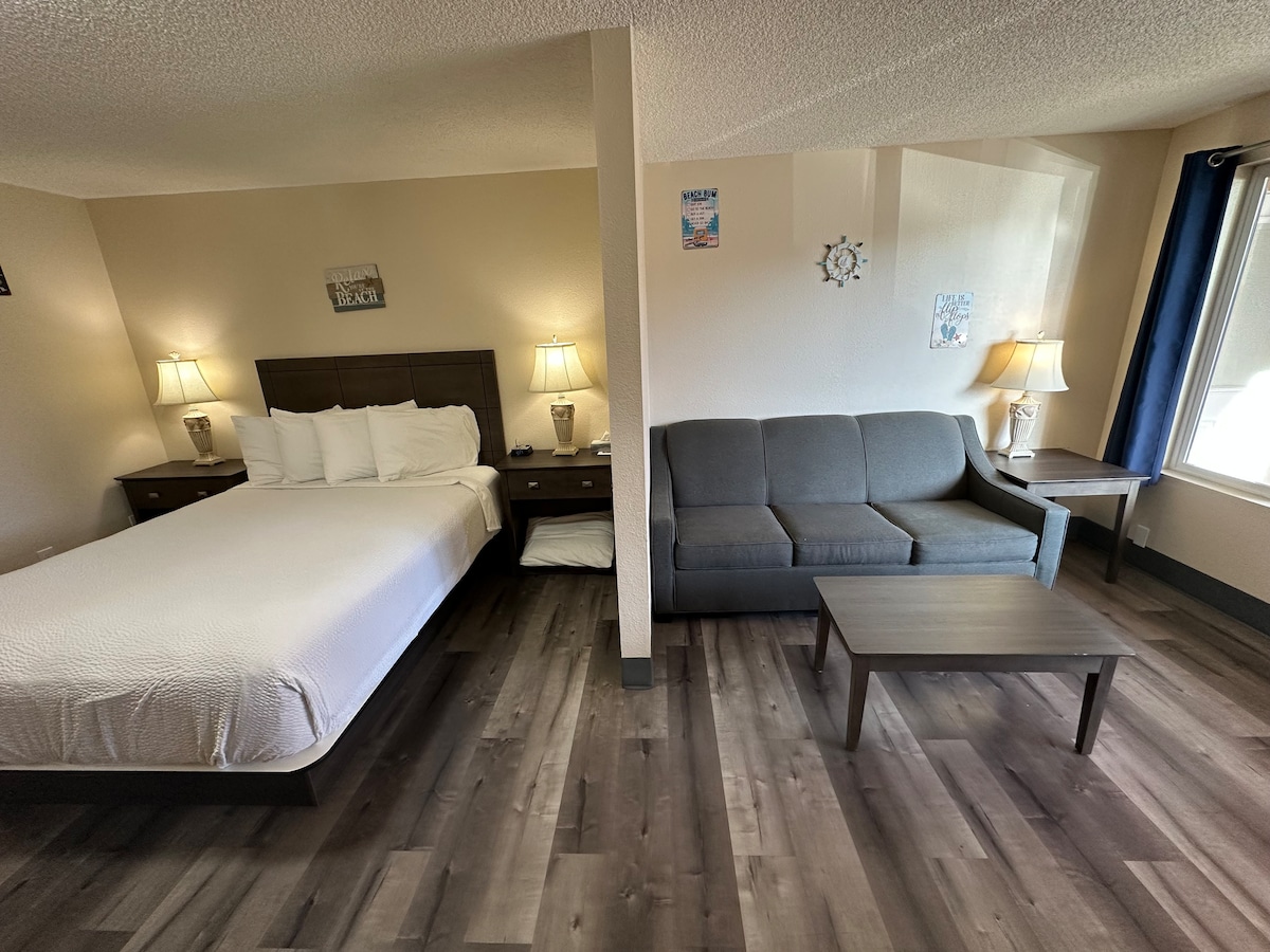 Located less than a 10-minute walk to the Discovery Trail along the Pacific Ocean and conveniently located near restaurants, shopping, and activities in downtown Long Beach. Portland is a 2-hour drive, and Seattle 3-hours. A spacious double queen family suite, with two queen beds and a pull out sofa bed, full kitchen, WiFi, sleeps up to 7 persons, and is located at the Coastal Inn and Suites.