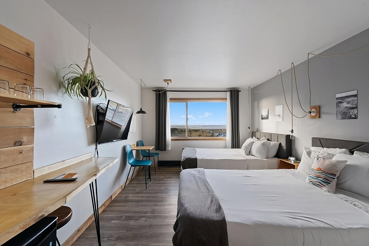Stay at Salt Hotel, located on the harbor in the heart of Ilwaco. Our modern, cozy rooms feature memory foam beds, private baths, a fridge, microwave, and TV. We’re the closest lodging to Cape Disappointment and just minutes from stunning Pacific beaches. Enjoy our onsite pub with view of the water (check our website for hours), relaxing sauna, and dog-friendly rooms. Perfect for couples, solo travelers, families, and business guests—Salt Hotel is your ideal base camp for coastal adventures.