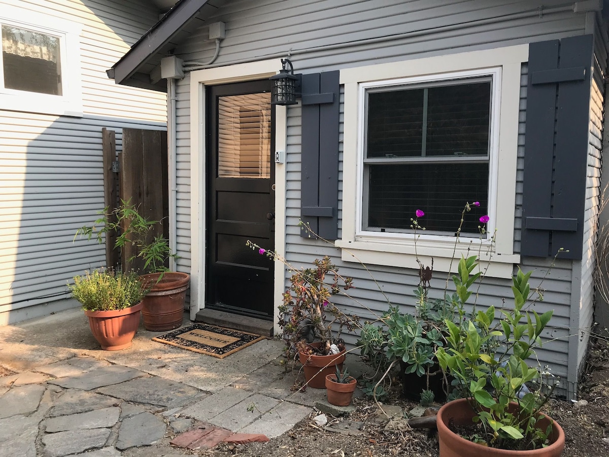 RELAX & ENJOY in our beautiful, private, spacious, SPOTLESS & peaceful "Homestay" in beautiful Carmel. Lovely furnishings, wonderful queen size bed and luxury linens. Fully equipped mini-kitchenette! A private gated entry to a small garden awaits...a large wide staircase leads you up to a spacious, light filled 1000 sq. ft. fully-equipped 1-bedroom private homestay W/private deck w/seating. Walk to village, river & wineries! Short scenic drive to Carmel by the Sea, Pebble Beach & Big Sur.