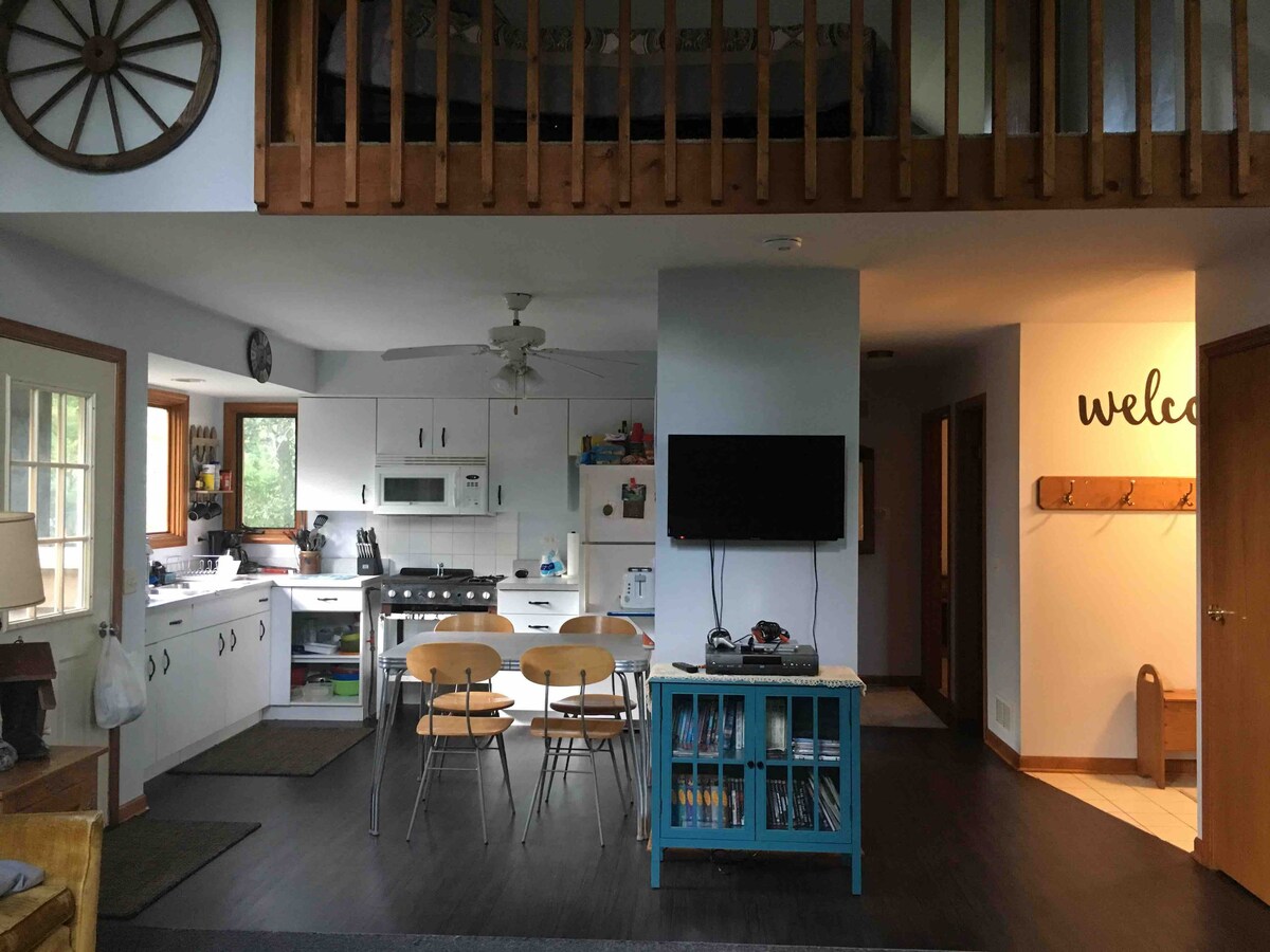 Fox River Barn is located in a picturesque setting with stunning views of the Fox River in Princeton, WI. This 1940s barn has been lovingly converted into a comfortable living space with modern features and amenities, making it the perfect retreat for a romantic getaway or a peaceful escape from the city. Inside, the bones of the barn are present. From beams and rafters on the main level to the tall, gable barn ceiling. Just imagine all the different ways the barn had been used over time.