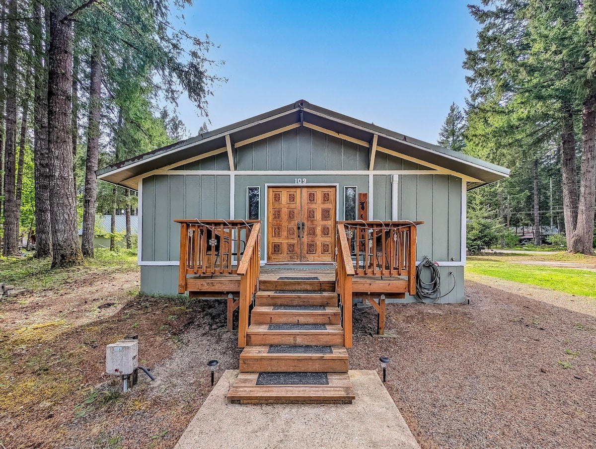 Quiet, family-friendly cabin in a wonderful neighborhood retreat area. Abundant outdoor activities nearby including Mt. St. Helens, Mt. Rainier National Park, and White Pass Ski Resort. Short walk to public river access, forest lands, trails, and waterfalls. Safe for kids and small dogs, high-speed internet, and more. - 25 min to Mt. Rainier National Park entrance (seasonal, May–Oct) - 30 min to White Pass Ski Resort - 10 min to downtown Packwood