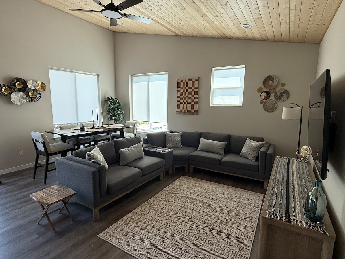 Super cute and romantic cabin provides a great base for all of your adventures in the area, from hiking on Mt. Rainier to skiing at White Pass and much more. This little home is cozy and welcoming with an open concept living space, a wood burning stove, a kitchenette and a nice loft above for the kids. Make a fire as dusk sets in, then relax on the comfy Purple queen mattress while you watch a movie or plan out tomorrow's activities. Located in the Timberline neighborhood, just off HWY 12.
