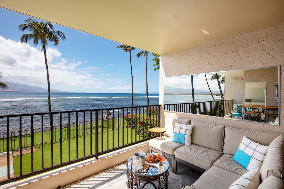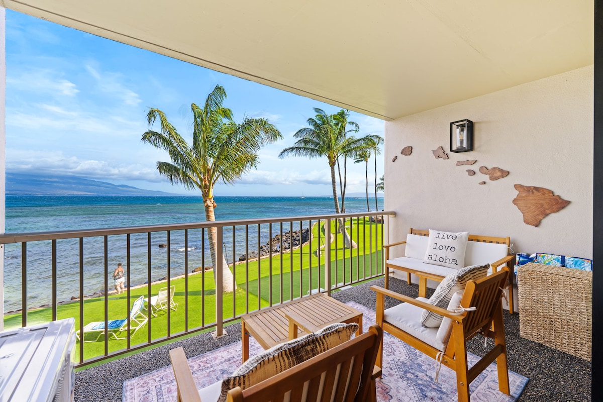 Escape to this ground floor beachfront unit for the ultimate relaxation. Extensively remodeled kitchen and bathroom with new flooring, ceiling fans, and split A/C in living room and bedroom. Wake up to the calming sounds of the sea, watch whales from your living room, and share the beach with sea turtles. Enjoy direct access to the grassy area and beach, basking in abundant sunshine.