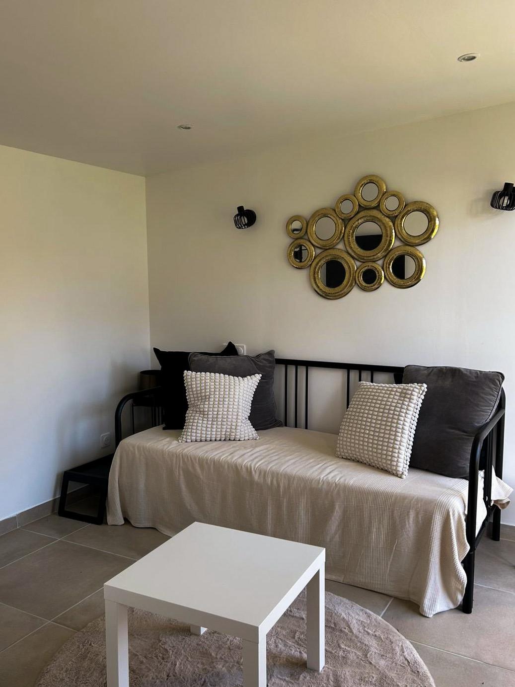 This 25m2 individual house offers all the comfort needed. Located in a flowered garden close to the main property, the house has an independent entrance and is accessible via a secure gate. Access to a therapeutic spa is optional (at an additional cost). It has a mezzanine for sleeping, a wardrobe space, a table and two chairs and a full bathroom.