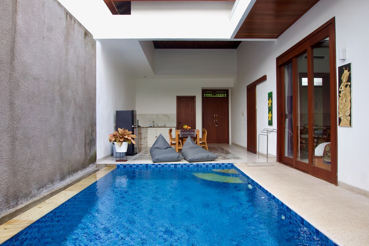 Welcome to Saltu Villas - Villa 3 Tucked away from main strip, this stylish 1-bedroom villa offers a perfect blend of contemporary design and tropical comfort. The villa boasts private pool, open plan living spaces, and stunning surrounds just minutes from Bali’s world famous beaches. Villa features: 🌴 Open plan living with AC/ seperate bedroom 💧 Private pool 📶 High speed WIFI, Smart TV Note - currently a construction site next door so will be some noise during the day.
