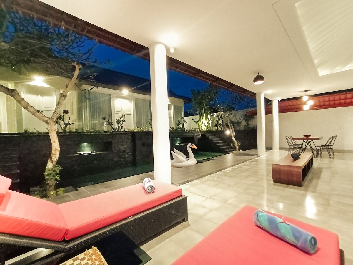 Brand New Villa in South Kuta: • 3 stylish air-conditioned bedrooms with garden views • 2 modern bathrooms with premium amenities (master-suite with a bathtub) • Huge pool, lush garden & patio for BBQs & lounging • Open-plan living with floor-to-ceiling glass doors • Fully equipped kitchen • 300 Mbps Wi-Fi • Daily cleaning, fresh towels & linens • Baby cot & high chair on request • Concierge service: airport transfers, tours & more • Netflix,PS5 on request