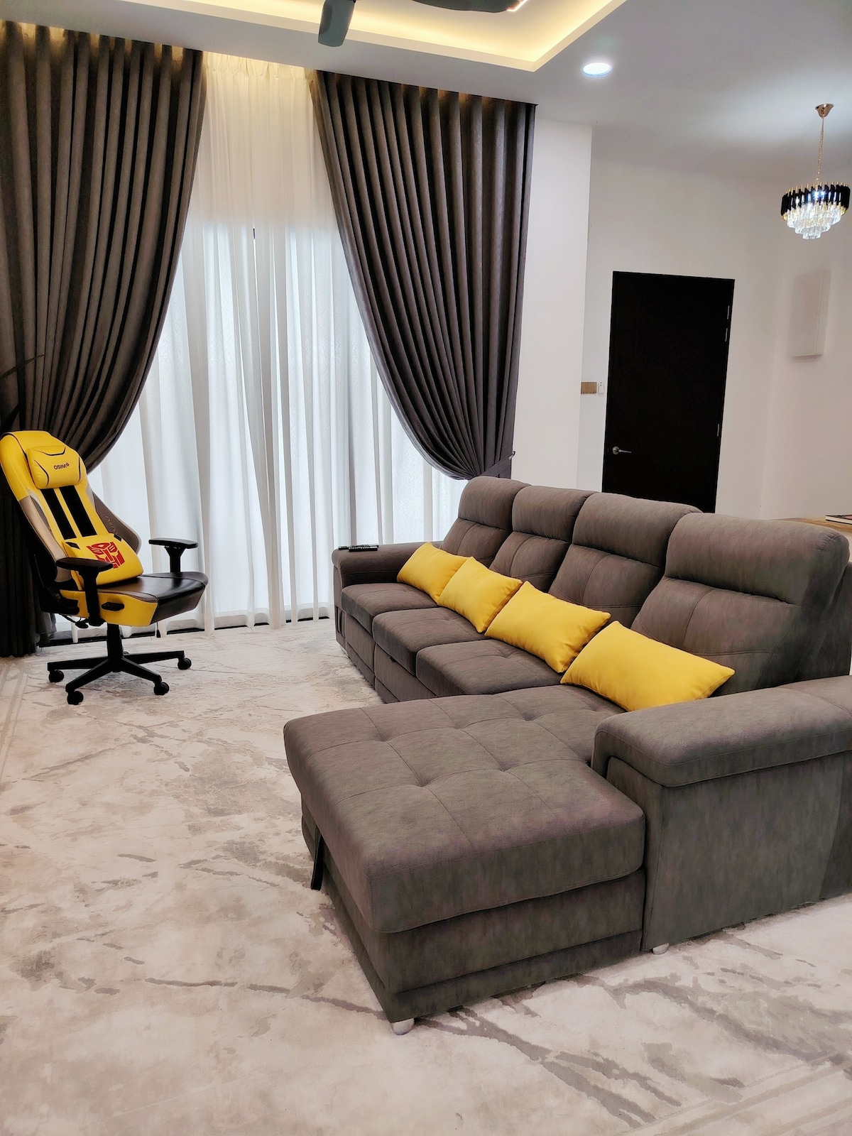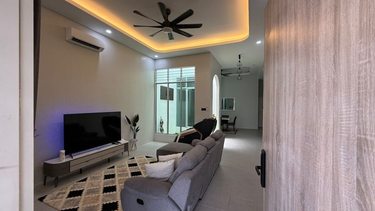 Welcome to our spacious semi-detached house located in the heart of Kulim City. Enjoy the comforts of home alongside peaceful secured gated surrounding. Bedroom 1 (Master Bedroom) 2 unit of Queen Size Bed with 1.5hp Air Conditioning + private bathroom with water heater Bedroom 2 2 unit of Super Single Bed with 1.5hp Air Conditioning Bedroom 3 1 unit of Queen Size Bed with 1.5hp Air Conditioning Modern Stylish Living Room - Living area with Air Conditioning - Smart TV with MYTV Channel